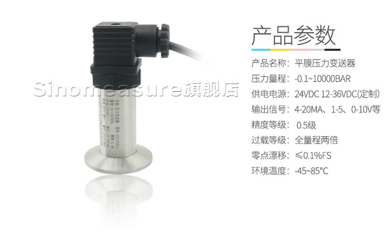 SIN-P350衛生平膜型壓力變送器,衛生平膜型液位變送器是測量端采用特殊堅固處理的齊平隔離膜片。結構緊湊、耐腐蝕,抗震動、抗微粒沖擊、寬范圍溫度補償。膜片采用316L不銹鋼材料,特別適用于醫療、食品行業有衛生要求的,粘稠流體壓力和液位測量,解決了結垢,堵塞,清潔衛生等問題。高精度的信號處理電路位于將傳感器輸出信號轉換為標準輸出信號,可直接與計算機、控制儀表、顯示儀表等相連。采用一體化全不銹鋼結構,經過多次不銹鋼焊接,實現了全固態設計,安裝方便。廣泛應用于食品、醫藥、衛生及釀酒工業等部門。