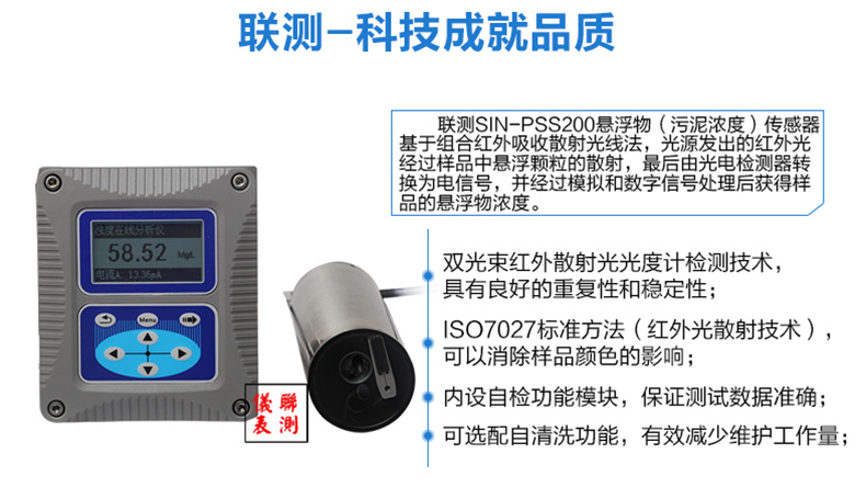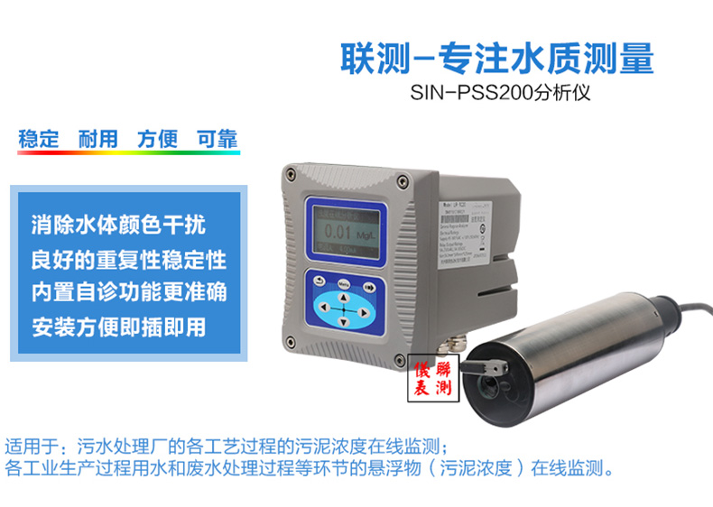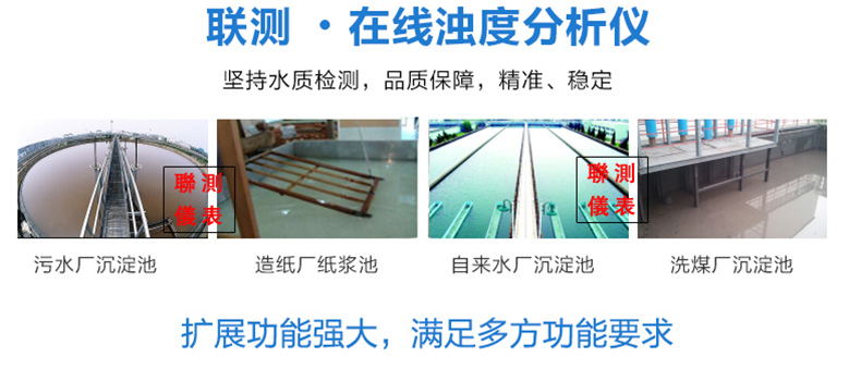 聯測SIN-PTU200在線濁度分析儀內置微處理器,適用于于污水廠、自來水廠、水站、地表水、工業等領域濁度監測,例如:污水廠沉淀池、造紙漿液池、提升泵站、氧化溝濁度測量等。